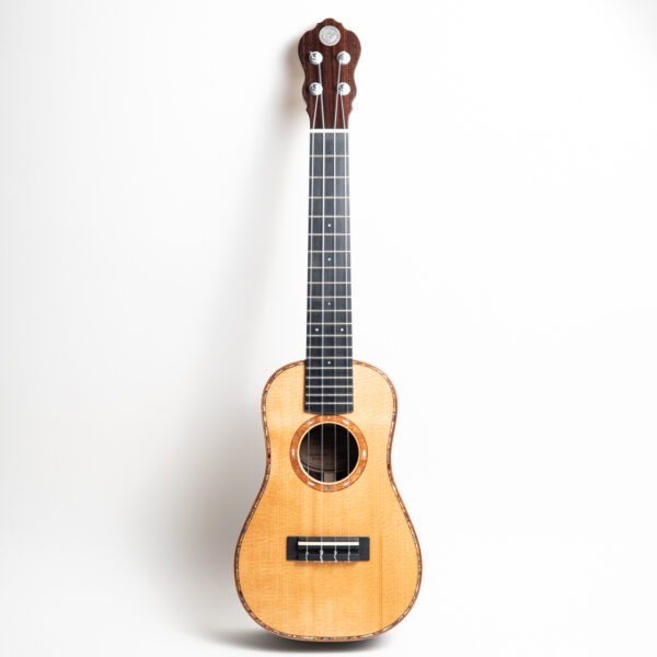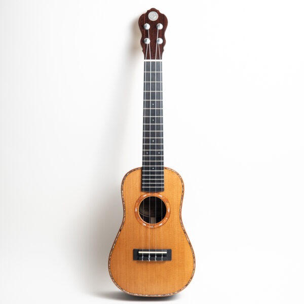 レッドシダーとクリアナイロン弦による素朴で暖かみのある音色、力強くパンチのあるサウンドがボディの深いところから響いてくる印象です。ポロポロといつまでも爪弾いていたくなるような音にとても癒されます。ソロウクレレももちろんですが、ストラミングや弾き語りにも合う万能なウクレレです。